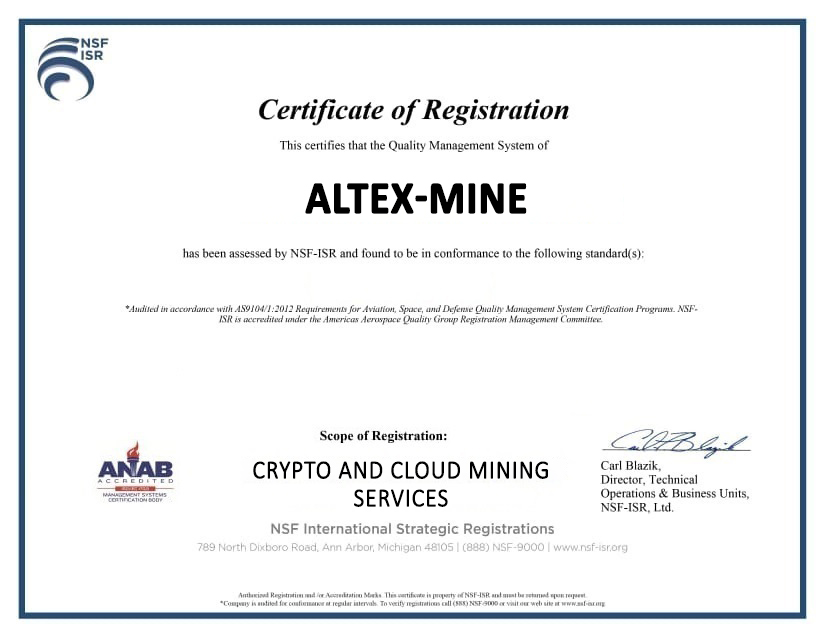 Check Certificate Here We provide a multi-algorithm, cloud mining service using the latest